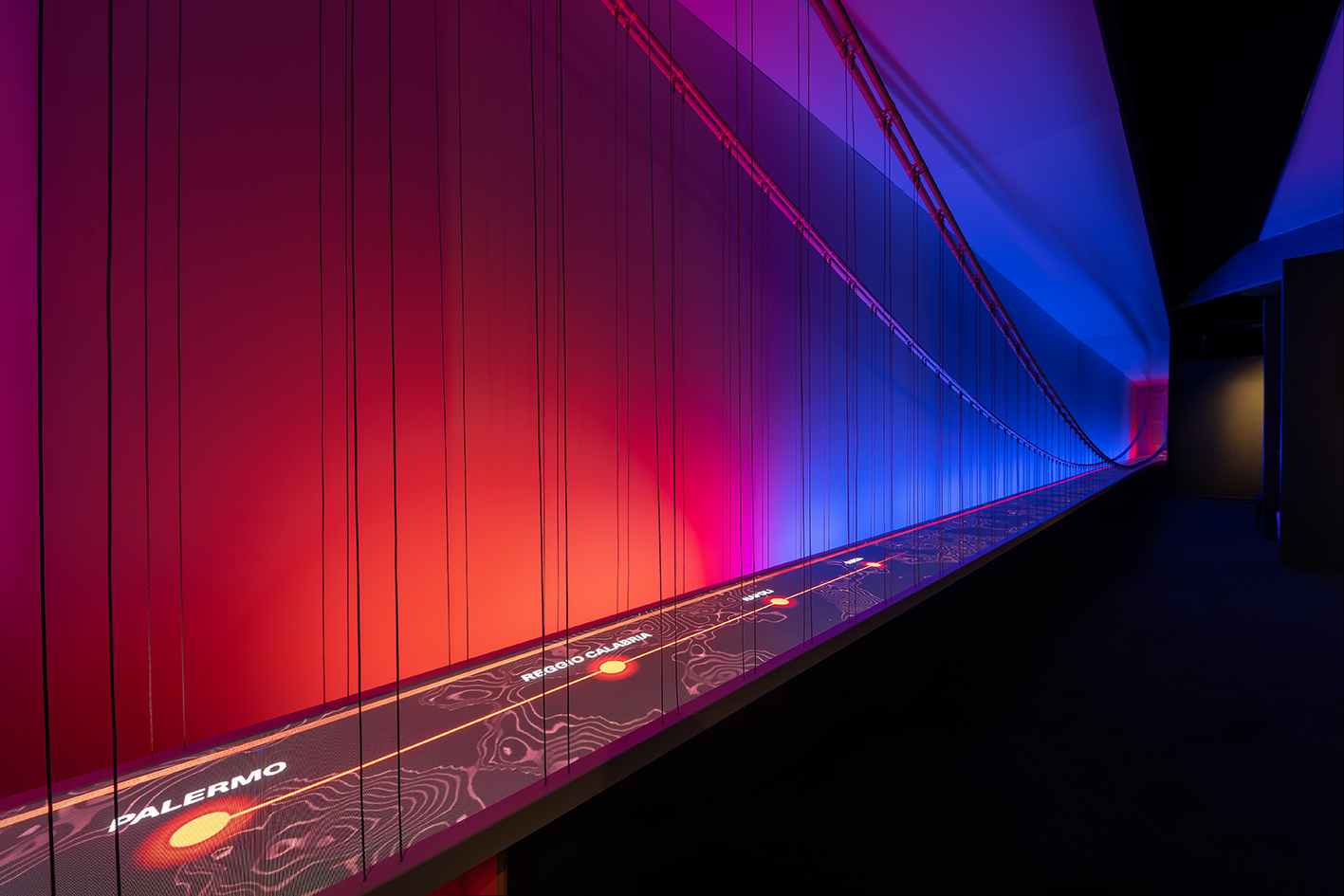 In questo viaggio attraverso il tempo, protagoniste sono le grandi opere realizzate da Webuild, in Italia ma anche all’estero. Lo sguardo e l’attenzione del visitatore vengono così rapiti dal racconto dei ponti costruiti sul Bosforo, dall’ampliamento del Canale di Panama, dalle metropolitane costruite a Doha come a Riyadh, o ancora delle grandi dighe realizzate in Etiopia.